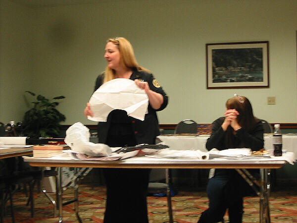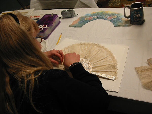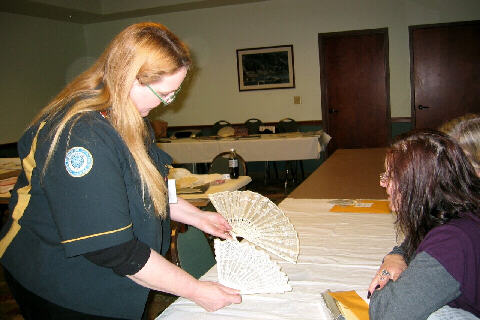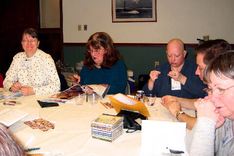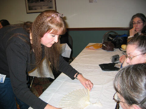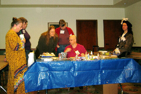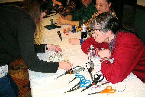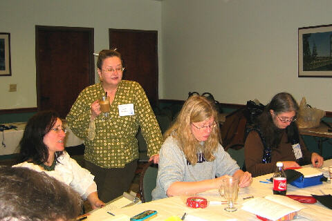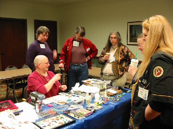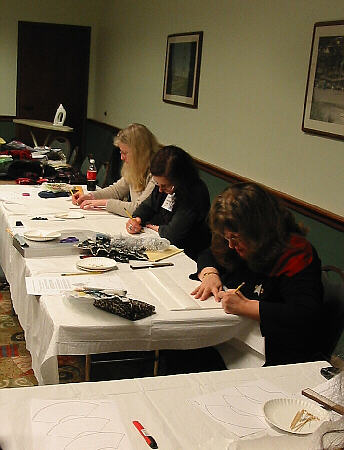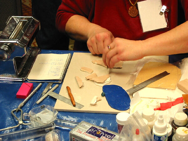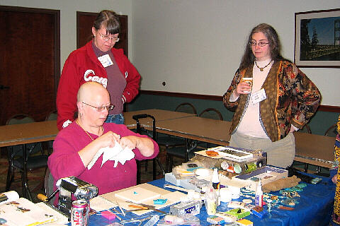 Joanne teaches Julie, Lisa, Vicki Betty and Marie about techniques with clay.